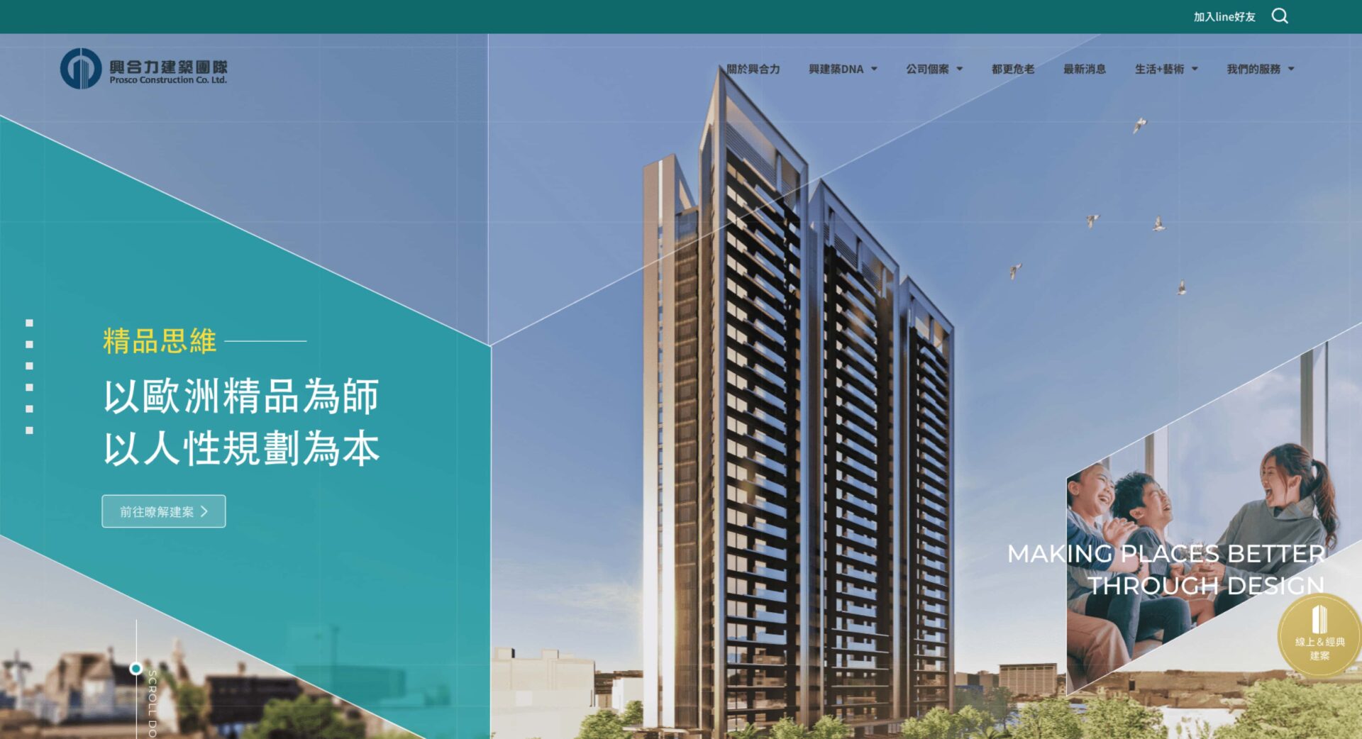 融合現代化與人性化,營造出創新與活力的感受。通過動態圖像和斜角效果,吸引訪客的注意力。已大圖片展示了建築作品的細節,突顯品質與美學的融合。這些設計元素共同構成了一個現代美觀實用的網站,展示興合力的品牌價值和服務理念。