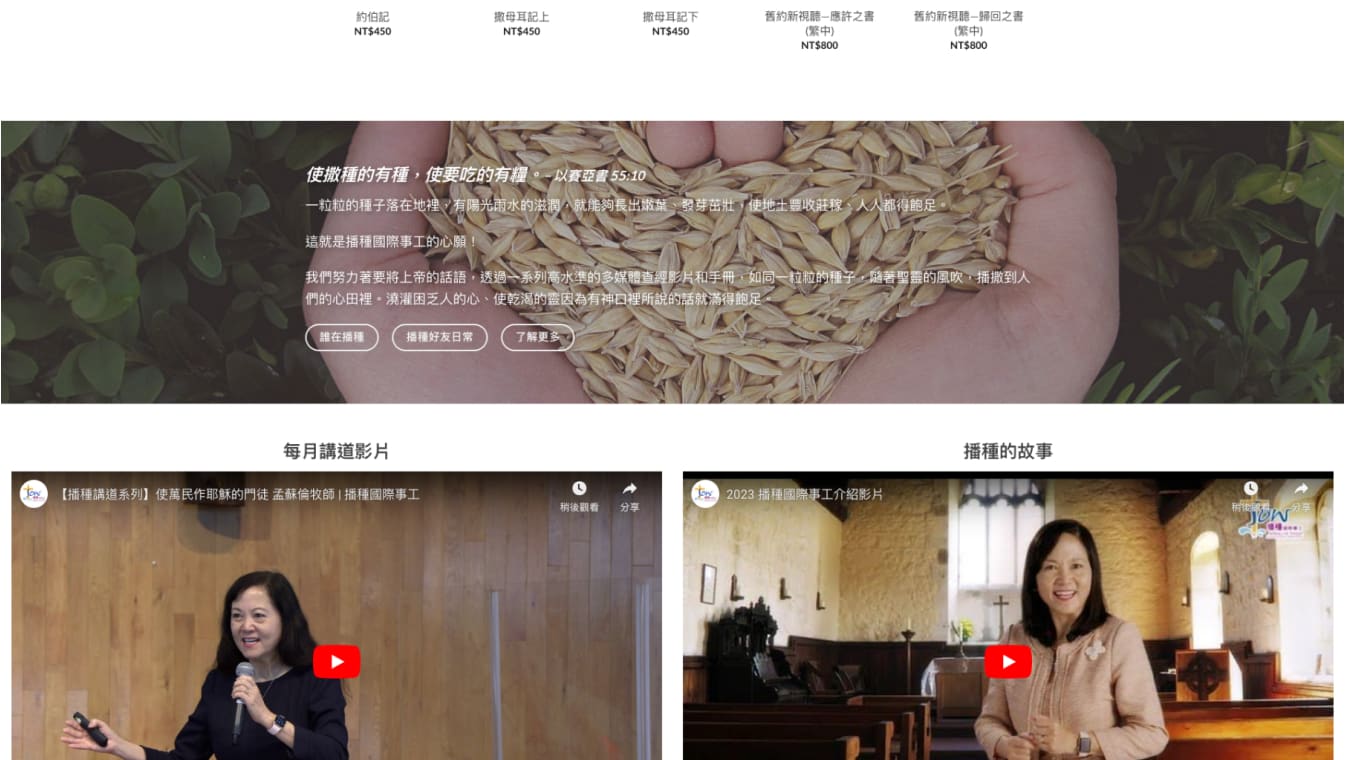 播種國際事工為非營利機構,致力製作高水準的中英雙語多媒體查經教材,供應各地團契查經、 教會主日學及宣教事工使用。